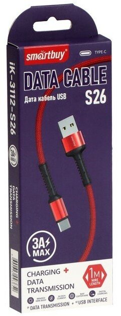 Кабель USB Type-C Smartbuy 1м Red(iK-3112ERGbox)