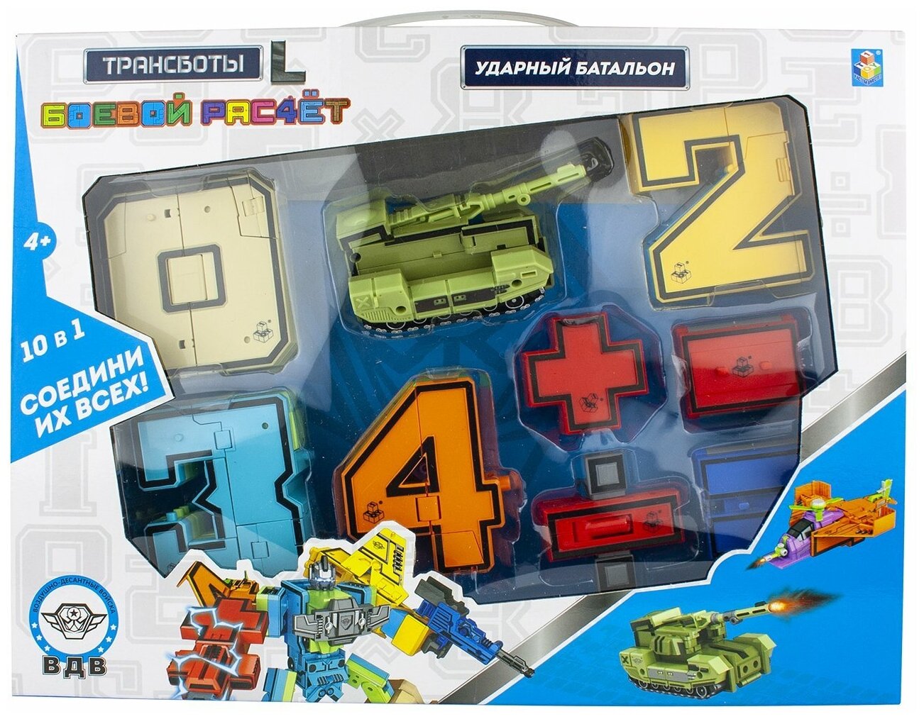 Новинка от Трансформеры 1TOY Трансботы "Боевой расчет" L. Ты думаешь это просто цифры? Ты решил, что они нужны для изучения математики? Нет! Это всего лишь прикрытие! Несколько движений и цифры превращаются в боевую технику. Не успеешь моргнуть и глазом, как цифры-трансформеры объединятся и превратятся в "Фаербота" из 5 цифр и 5 знаков.