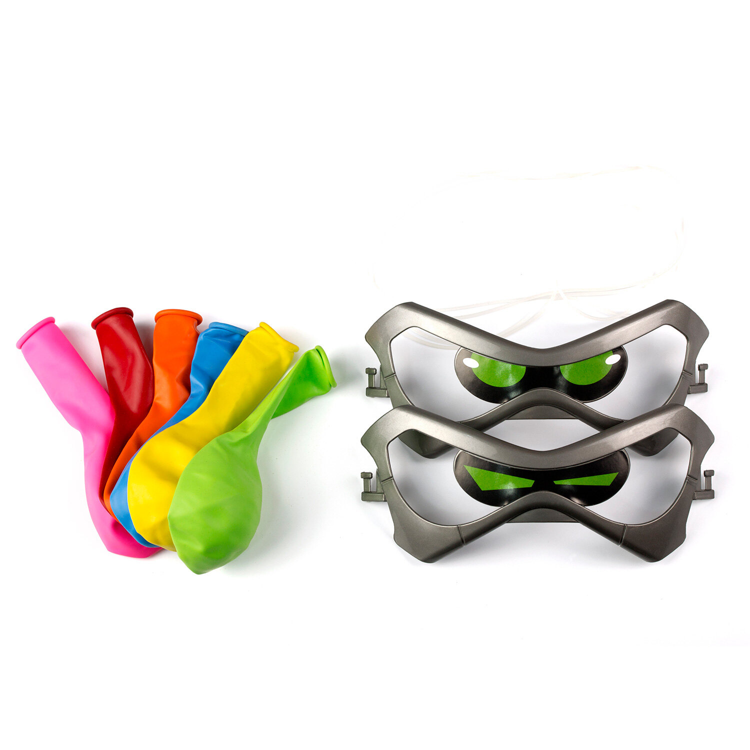 Роботы с настоящими воздушными шариками соревнуются друг с другом, кто кого лопнет быстрее. Оснащены маленькими туловищами на колесиках красного и синего цвета с интересными принтами, двумя робо-руками. На каждый шарик надевается серая маска с принтованными глазами.