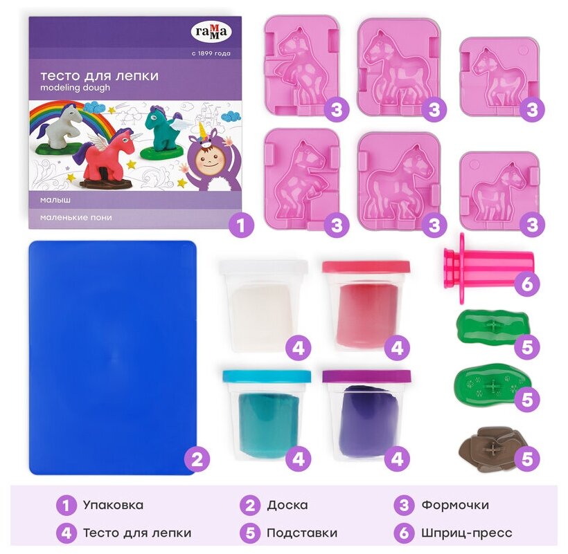Гамма Тесто для лепки Малыш Маленькие пони 4 цвета