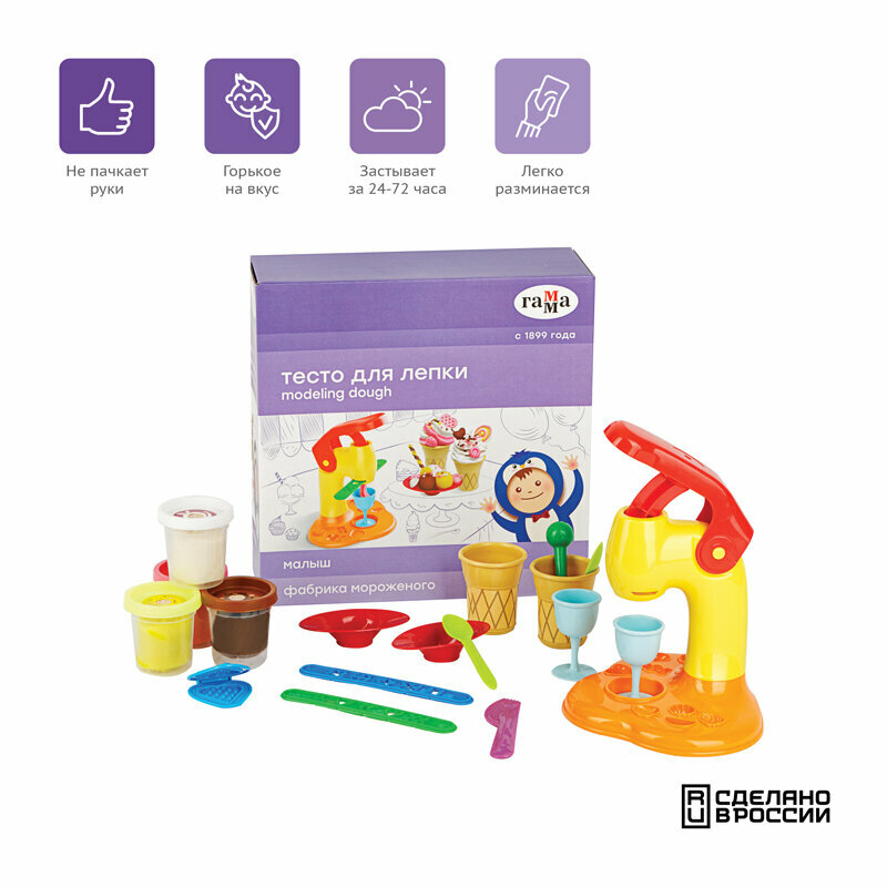 Гамма Тесто для лепки Малыш Фабрика мороженого 4 цвета