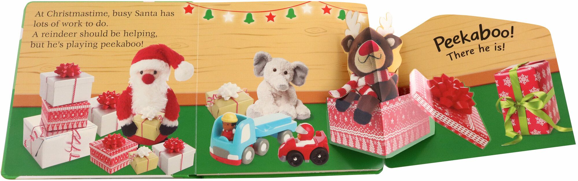 Come join a magical hide-and-seek Christmas! Look amongst the snow and Christmas trees to see if you can find Penguin and his friends hiding under the flaps.