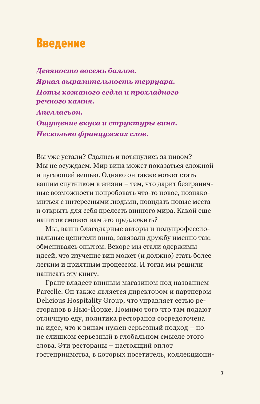 Всегда хотела научиться выбирать вино правильно, определить своих фаворитов, ориентироваться в терминологии и блеснуть знаниями при удобном случае. Эта книга точно для меня! Глоссарий оказался как нельзя кстати. Написано предельно доступно, разложено все по полочкам, с большим интересом погружаешься в мир вина. Почерпнула для себя много полезного. Невероятно красивая обложка, очень много ярких иллюстраций, качественная бумага, цветные страницы и шрифты. Отлично подойдет в качестве подарка.