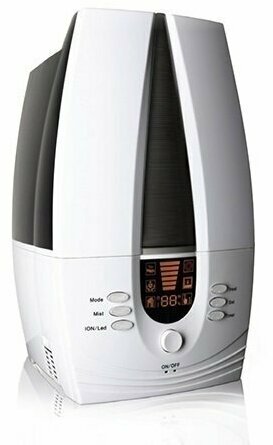 Большой объем резервуара - Низкая цена. Функцию увлажнения выполняет на "Отлично"! Понятный легкочитаемый дисплей. Теплый пар, ионизация, аромораспыление. Большой (!) резервуар для воды.