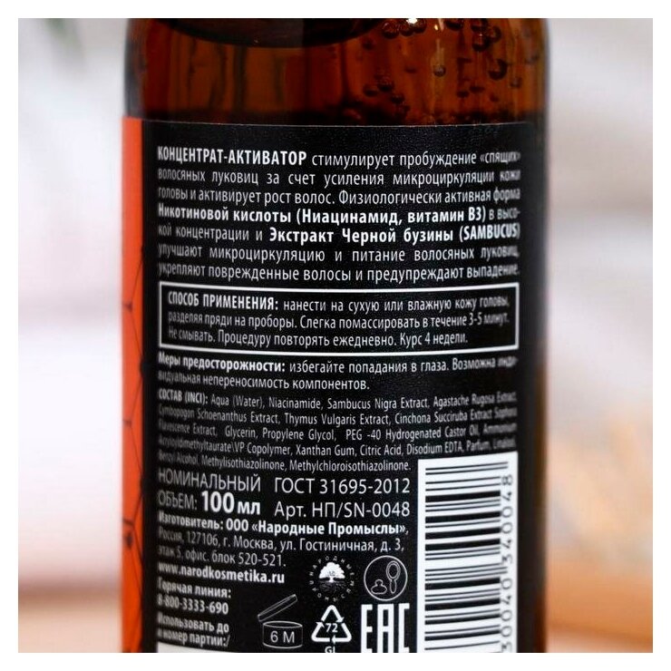Концентрат-активатор для волос Supernova Пробуждение спящих луковиц и увеличение густоты волос 100мл НАРОДНЫЕ ПРОМЫСЛЫ