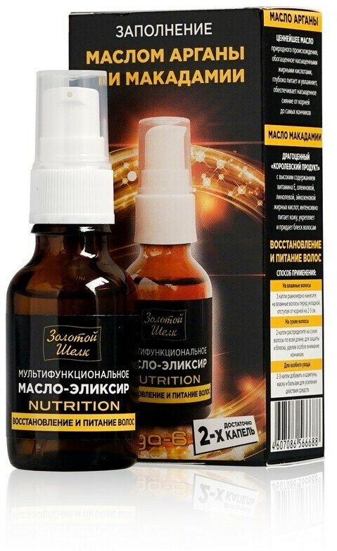 Масло-эликсир для волос Золотой Шелк Nutrition Мультифункциональное восстановление и питание 25мл НАРОДНЫЕ ПРОМЫСЛЫ