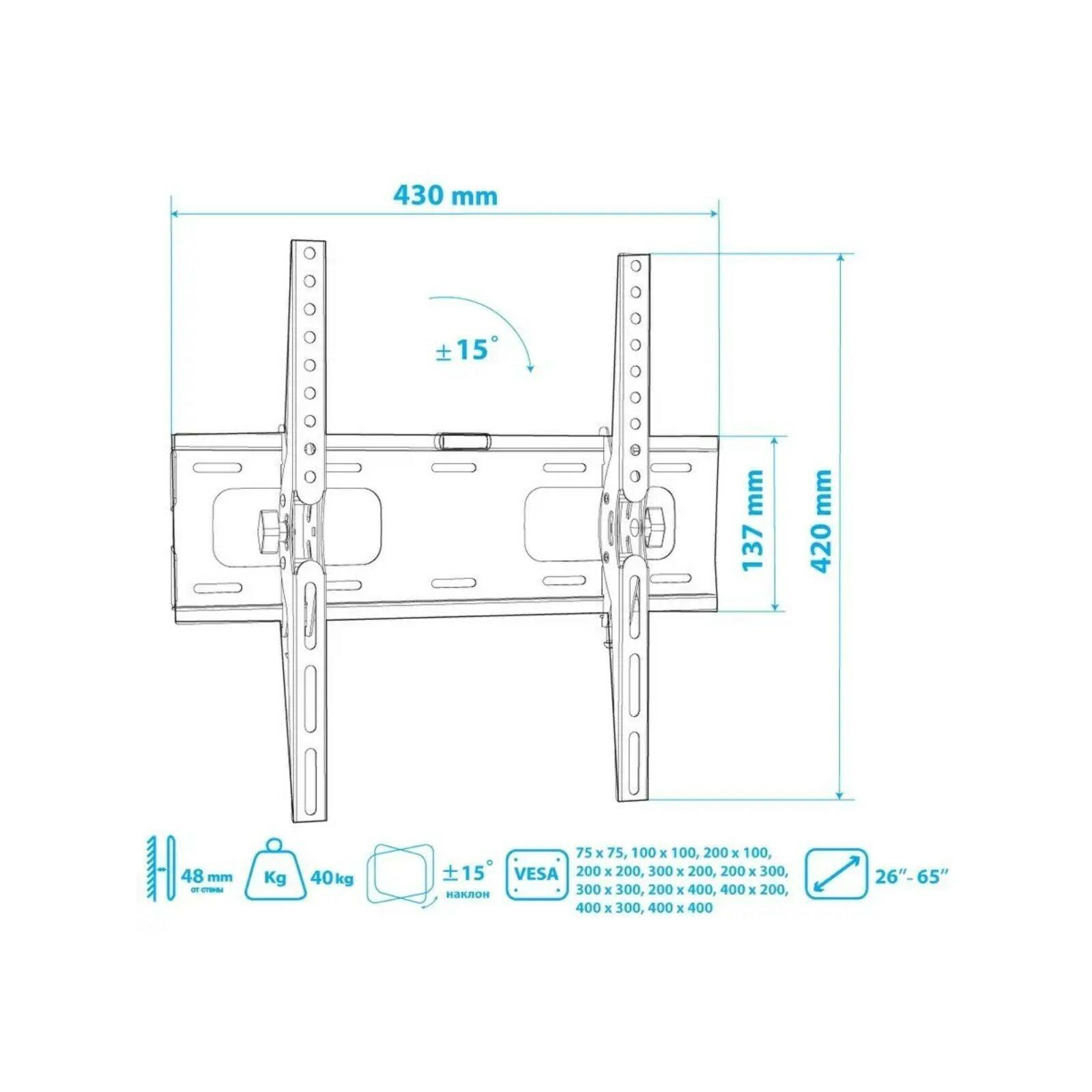 | Диагональ телевизора | от 26 до 65 " (66-165 см) |