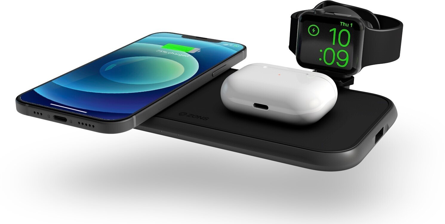 Беспроводное зарядное устройство Zens Aluminium 4 in 1 Wireless Charger с поддержкой Qi. 20Вт Черный ZEDC14B/00 Aluminium 4 in 1 Wireless Charger with 45W USB PD and Apple Watch MFI cable (черный)