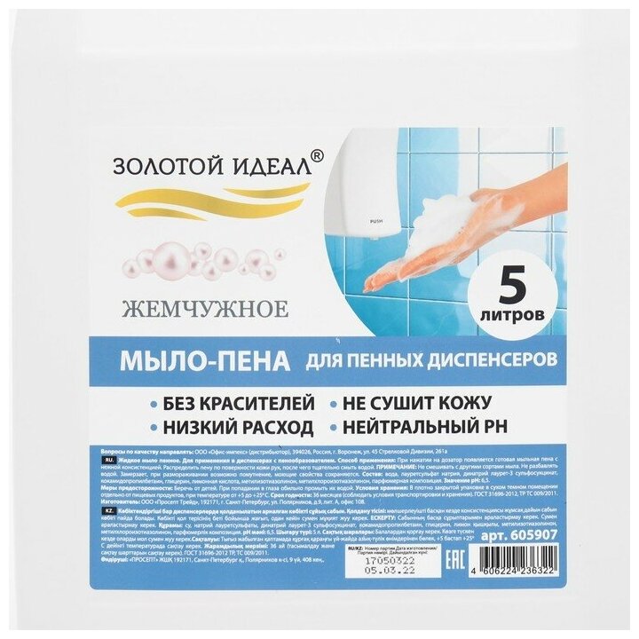 На сегодняшний день товар «Золотой идеал Мыло-пена для диспенсеров Жемчужное 5 л» можно купить с кешбеком в 1 магазине: Яндекс.Маркет