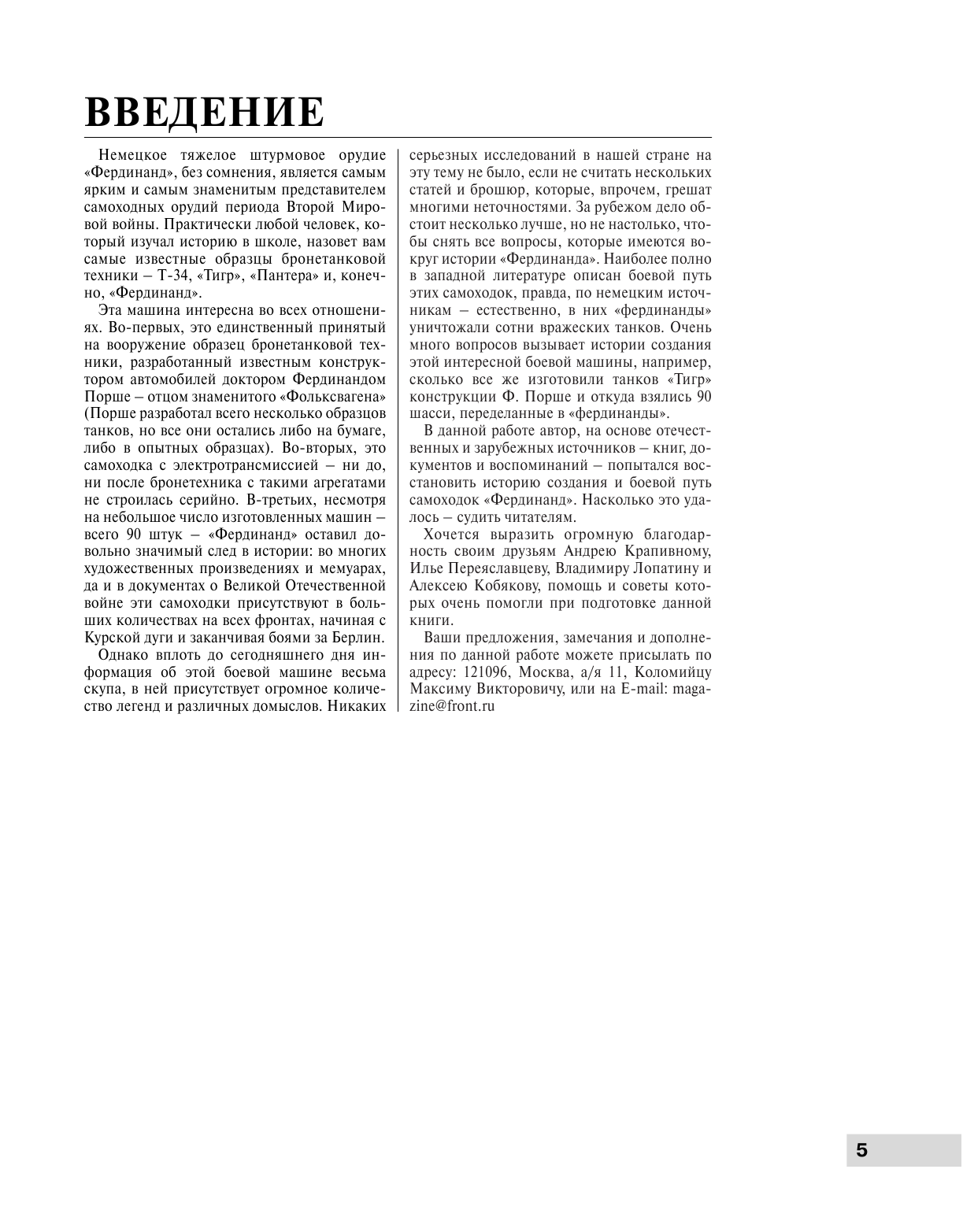 Книга получилась удачная,впрочем как и остальные у М Коломийца из этой серии. Подробно описан весь путь создания и применения САУ Фердинанд/Элефант на всех фронтах где они применялись,интересна история появления этой самоходки,задуманой именно как танк ,а не САУ.Книга на хорошей бумаге с отличными фото и чертежами,есть даже и деталировка,но кто хочет более подробно изучить конструкцию САУ можно порекомендовать книгу этого же автора Фердинанд -крупным планом там полнейшая деталировка и подробнейшие чертежи