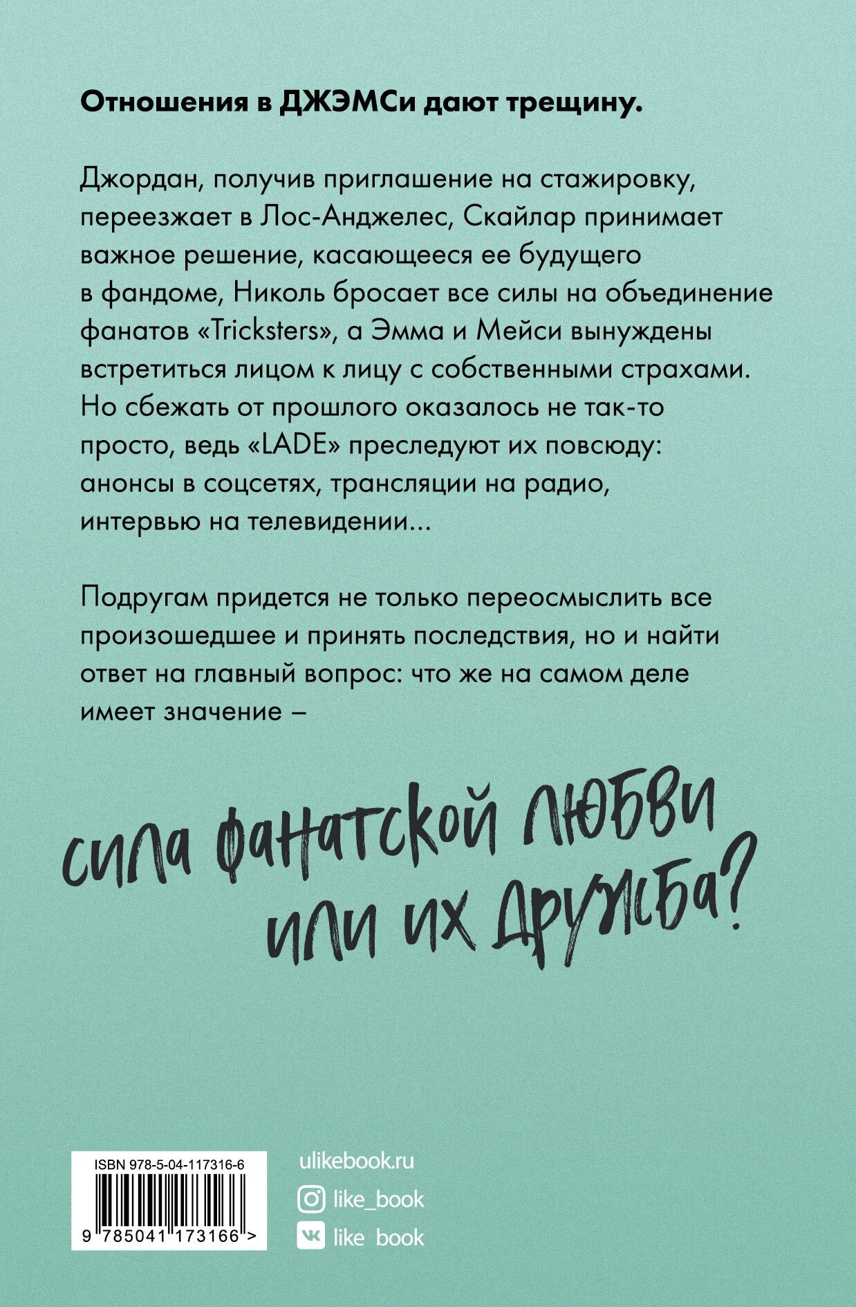 Отношения в ДЖЭМСи дают трещину. Джордан, получив приглашение на стажировку, переезжает в Лос-Анджелес, Скайлар принимает важное решение, касающееся ее будущего в фандоме, Николь бросает все силы на объединение фанатов "Tricksters", а Эмма и Мейси вынуждены встретиться лицом к лицу с собственными страхами. Но сбежать от прошлого оказалось не так-то просто, ведь "LADE" преследуют их повсюду: анонсы в соцсетях, трансляции на радио, интервью на телевидении… Подругам придется не только переосмыслить все произошедшее и принять последствия, но и найти ответ на главный вопрос: что же на самом деле имеет значение - сила фанатской любви или их дружба?