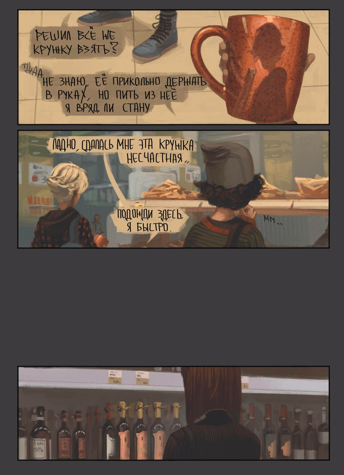 Она моя самая любимая художница. Этот комикс пропитан романтикой российских дворов, маленьких квартир, нашей культурой, бедностью к которой мы так привыкли. В каждой мелочи можно найти что-то теплое, что погружает в ностальгию.
