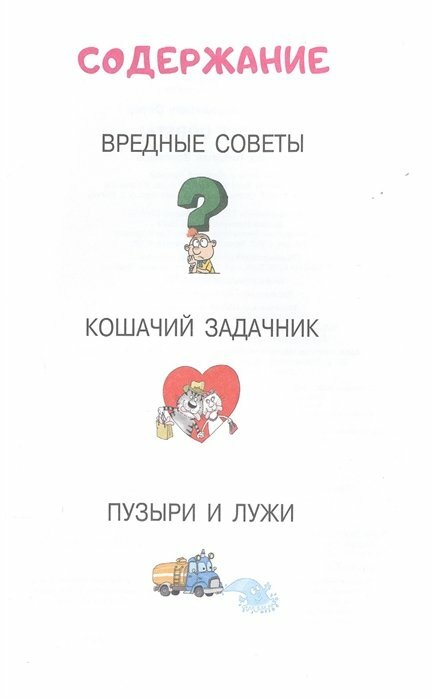 "Вредные советы" с иллюстрациями Николая Воронцова - это ещё и смешные коллажи, анекдоты, объявления, игры и приколы. Есть что рассматривать и над чем поразмышлять, то есть размять мозги перед тем, как приступить к очень сложным задачам про котов, кошек и их котят и философским историям из жизни "одной воды".
