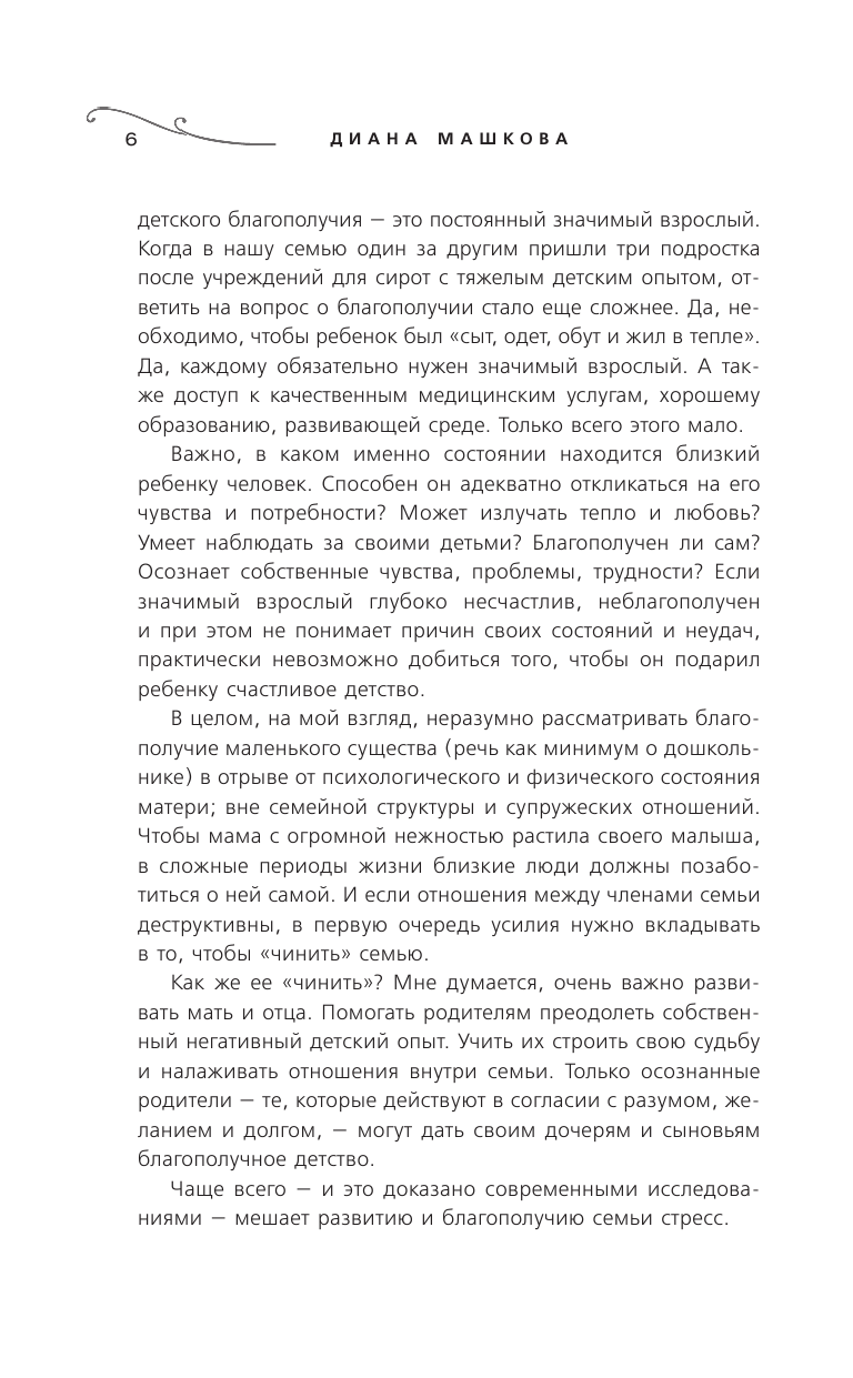 Ценность этой книги в её искренности и в её реальности. Эта удивительная трансформация неопытных и наивных молодых людей в прекрасных сильных осознанных родителей действительно случилась на самом деле. И все дети семьи, как кровные так и приёмные, настоящие и реально существуют. Большое спасибо Диане Машковой за её откровенность, что она решила рассказать обо всех своих переживаниях и, читая эту книгу, как будто слушаешь её рассказ, адресованный лично тебе.