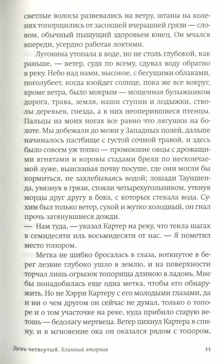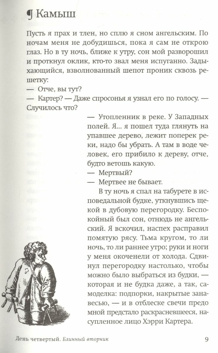 1491 год, деревушка Оукэм, затерянная средь английских лесов, отрезанная от центров цивилизации бурной рекой. Ранним утром приходит весть — погиб деревенский богач Томас Ньюман. Убийство, самоубийство, несчастный случай? А может, он и вовсе не умер, а исчез? Священник Джон Рив, которому как духовнику известны многие секреты жителей деревни, хочет разобраться, что же произошло с Ньюманом, человеком не только самым богатым в Оукэме, но и самым трудолюбивым, самым образованным и полным всевозможных идей. И что же будет, если случившееся с ним так и останется загадкой? История, рассказываемая священником, медленно, извилисто движется назад, от финала к ее началу, открывая микрокосм средневекового бытия с его страхами, надеждами, верованиями, дикостью и неуютом, — бытия аскетичного и невероятно красочного. Четыре дня Масленой недели полны тревоги, странных теней, тайн и непроясненных вопросов. Священник Джон Рив, воюющий с собственными инстинктами и страстями, с паствой, с самим устройством мира, пытается не только понять, что произошло с его другом, но и осознать, где заканчивается человек и начинается Бог, как дело рук человеческих сопрягается с наивысшей Господней волей.