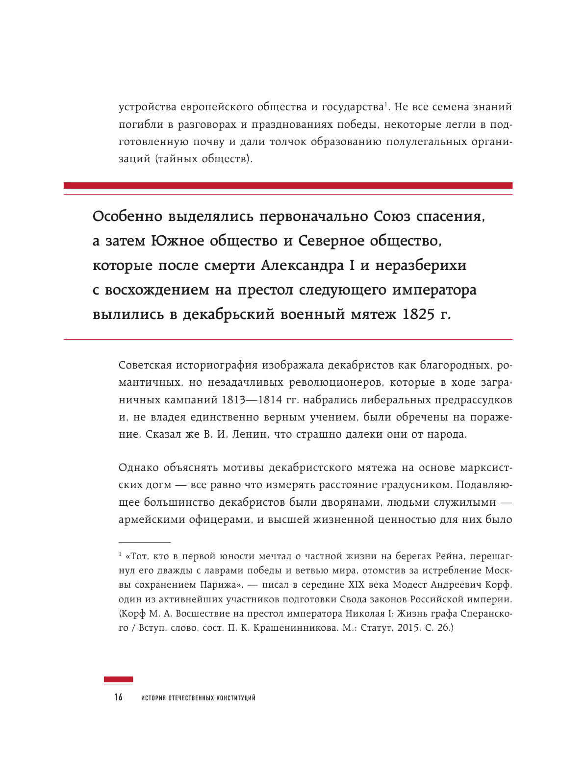 История отечественных Конституций — это череда изменений, которые отражают историю развития нашей страны. Каждая из них знаменовала собой новый этап в жизни государства: ведь потребность в переменах, как правило, возникает после масштабных событий общественно-политического характера. В этой книге вы найдете историю создания восьми Основных законов нашей страны: от первых предпосылок в 1825 году до первой в истории Отечества Конституции РСФСР 1918 года, от Конституции РСФСР 1978 года, которая после распада советского государства стала Конституцией Российской Федерации и действовала до 1993 года, до поправок в 2020 году.