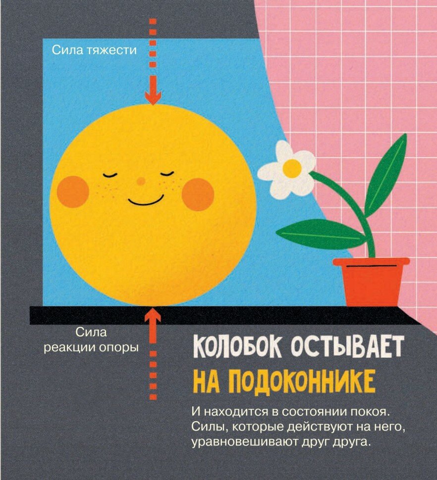 Книга «Ньютоновская физика» из серии «Университет для малышей» отправит маленьких читателей в мир большой науки и, на примере весёлой сказки о колобке, расскажет о движении тел и о силах, которые действуют на тело во время движения.
