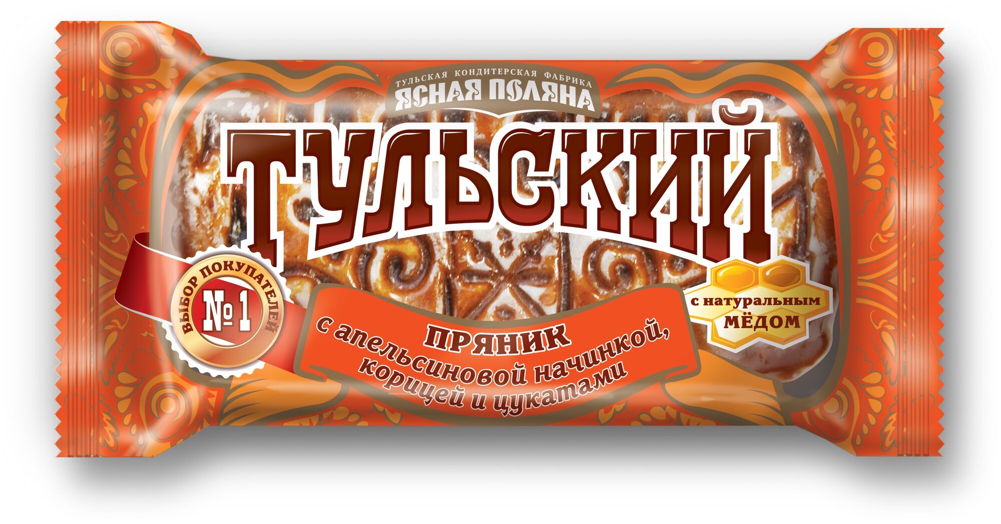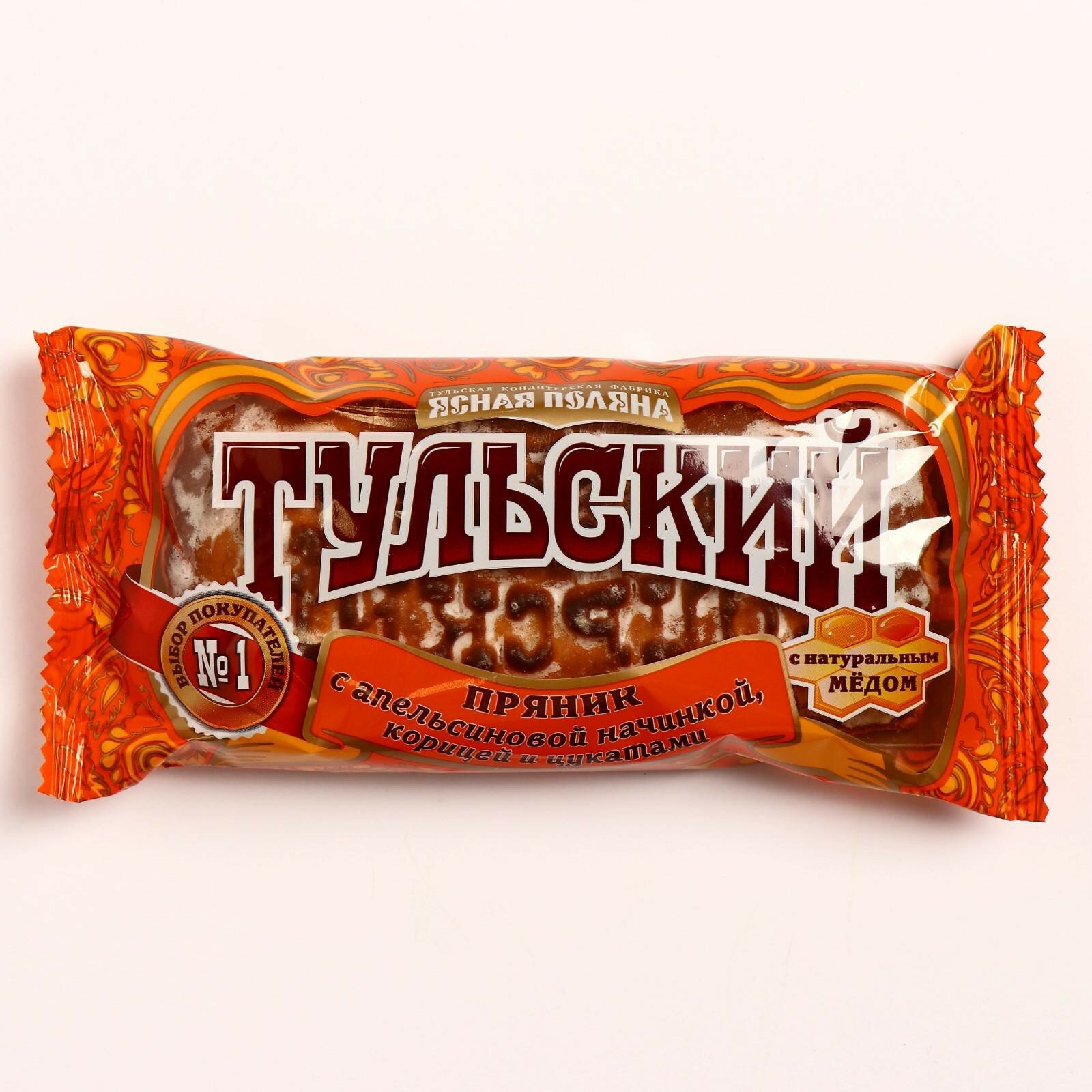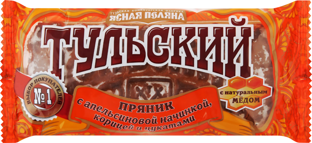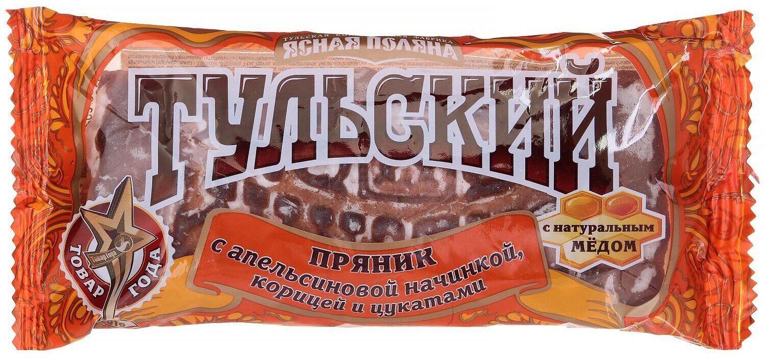 Настоящий Тульский пряник от фабрики Ясная поляна фирменная сладость Тульской области. Знаменитый печатный пряник с добавлением натурального меда, покрытый тонкой сахарной глазурью и апельсиновой начинкой с добавлением ароматной корицы и цукатов.