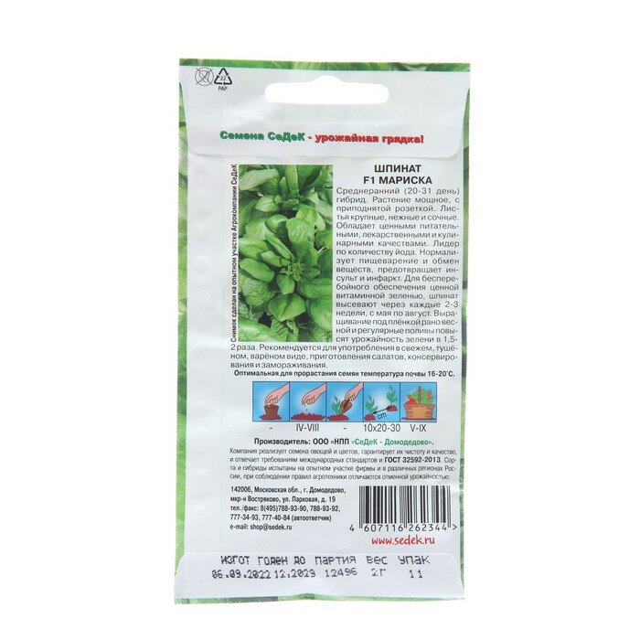 Сервис сравнения цен СкидкаГИД предлагает сравнить цены на товар «Семена шпинат f1 Мариска 2 г Без бренда»