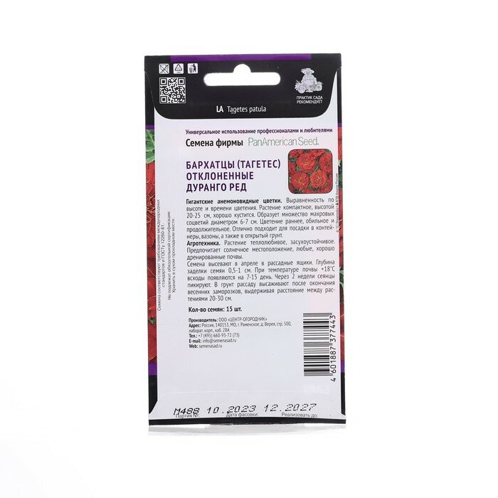 Семена Бархатцы Дуранго Ред 15 шт ПОИСК