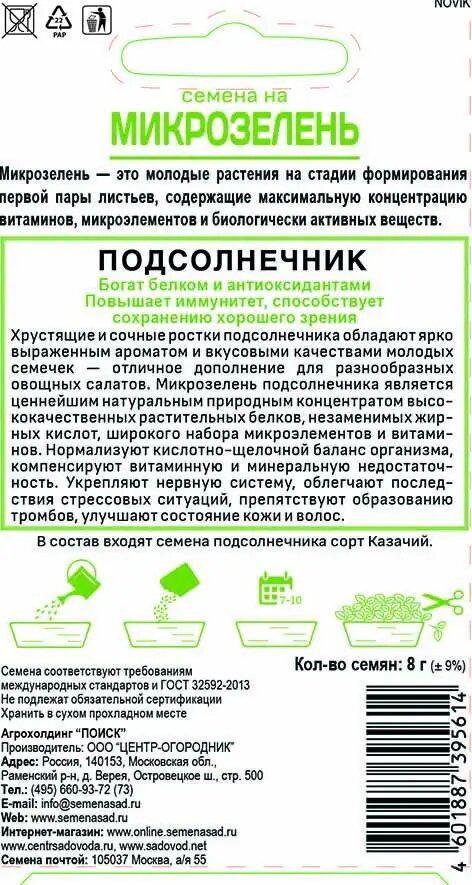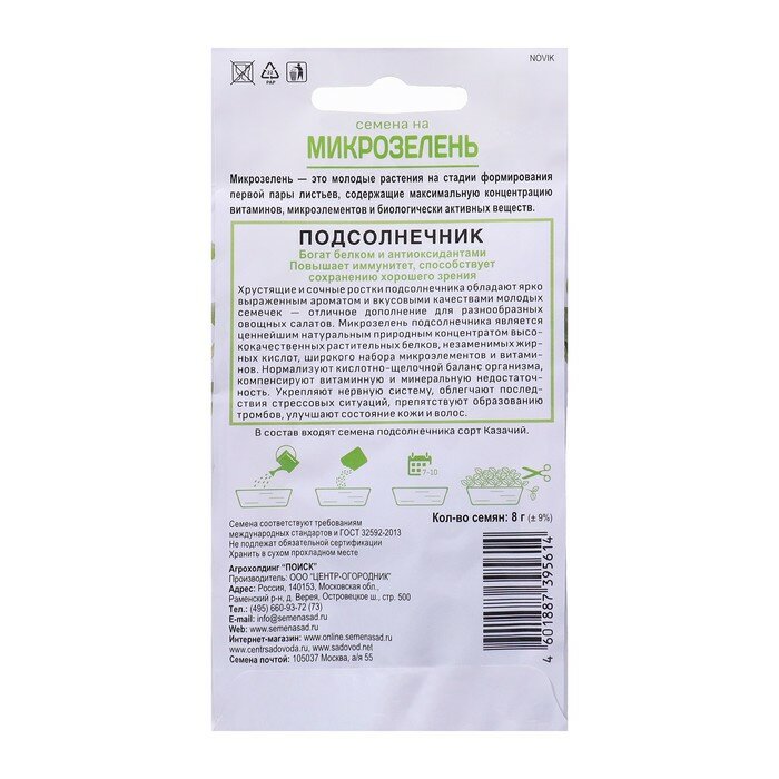 Сервис сравнения цен СкидкаГИД предлагает сравнить цены на товар «Семена на микрозелень Поиск Подсолнечник 8 г»