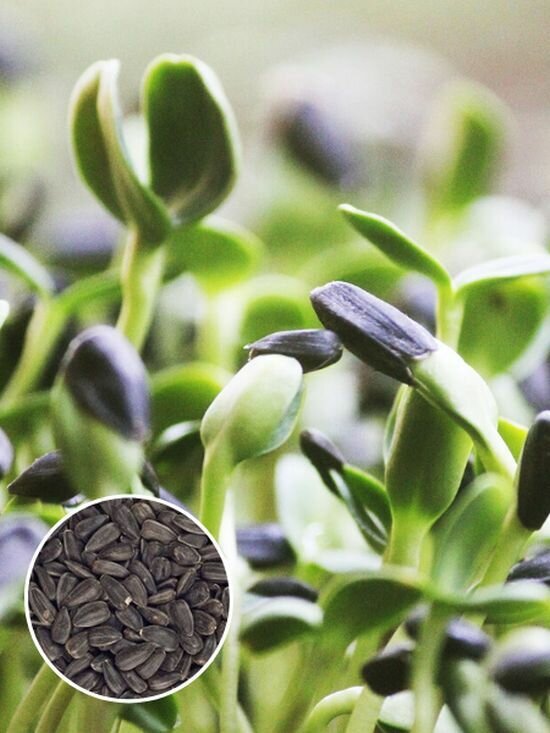Богат белком и антиоксидантами. Повышает иммунитет, способствует сохранению хорошего зрения. Хрустящие и сочные ростки подсолнечника обладают ярко выраженным ароматом и вкусовыми качествами молодых семечек - отличное дополнение для разнообразных овощных салатов.