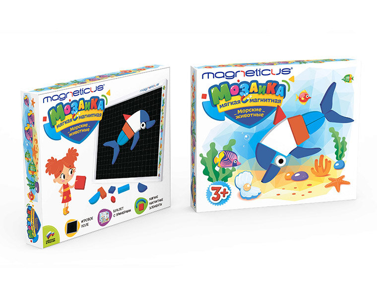Хорошая игрушка для развития моторики, усидчивости, воображения, изучения форм и цветов. Внутри есть задания для составления 11 морских животных. Совместима с другими сериями магнитных мозаик этого производителя. Фигурки нужно вытащить из блоков, так что ещё можно потом и обратно вставлять фигурки для изучения форм.