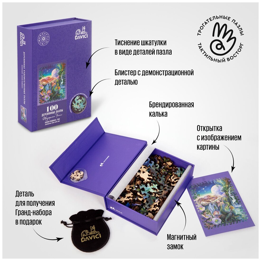 На сегодняшний день товар «Деревянная игрушка Davici Пазл Знак зодиака Рак (100 элементов)» можно купить с кешбеком в 1 магазине: Яндекс.Маркет