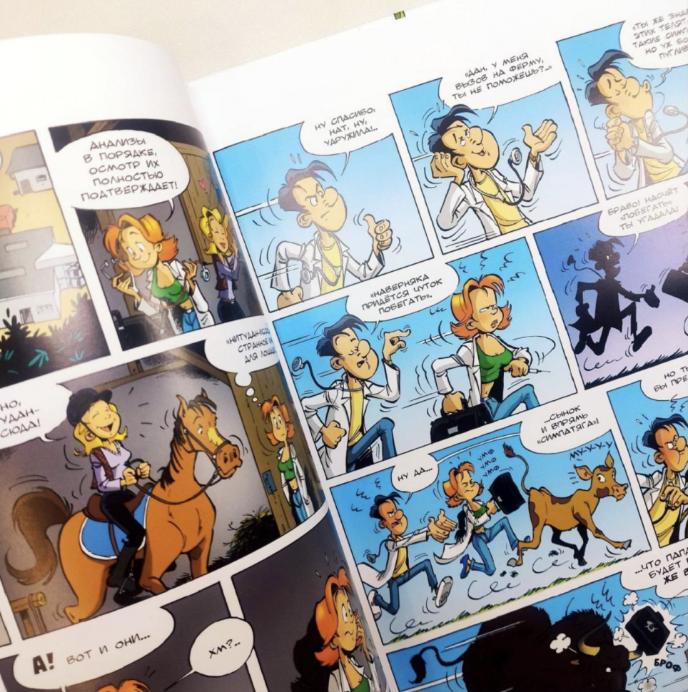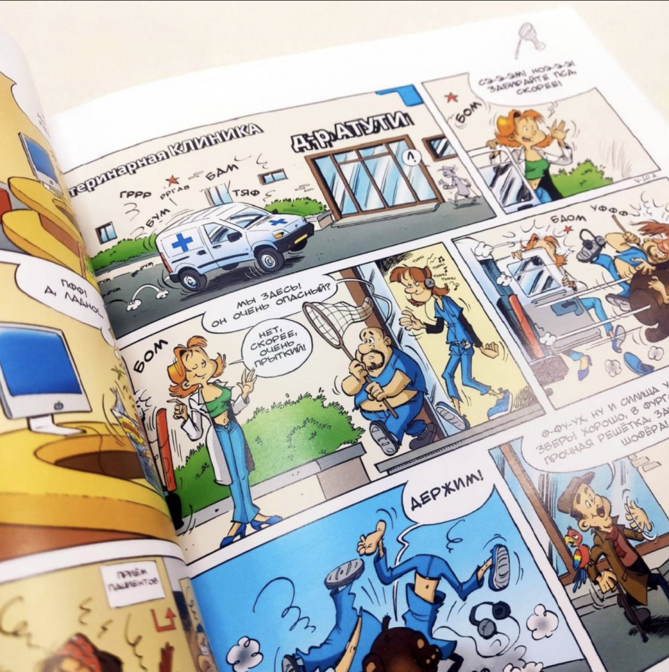 Новая серия комиксов снова посвящена животным, но теперь они выступают не основными героями, а массовкой (и весьма колоритной, надо сказать). На сей раз французские авторы обратили свой взгляд на труд ветеринаров, тяжёлый, но такой нужный!