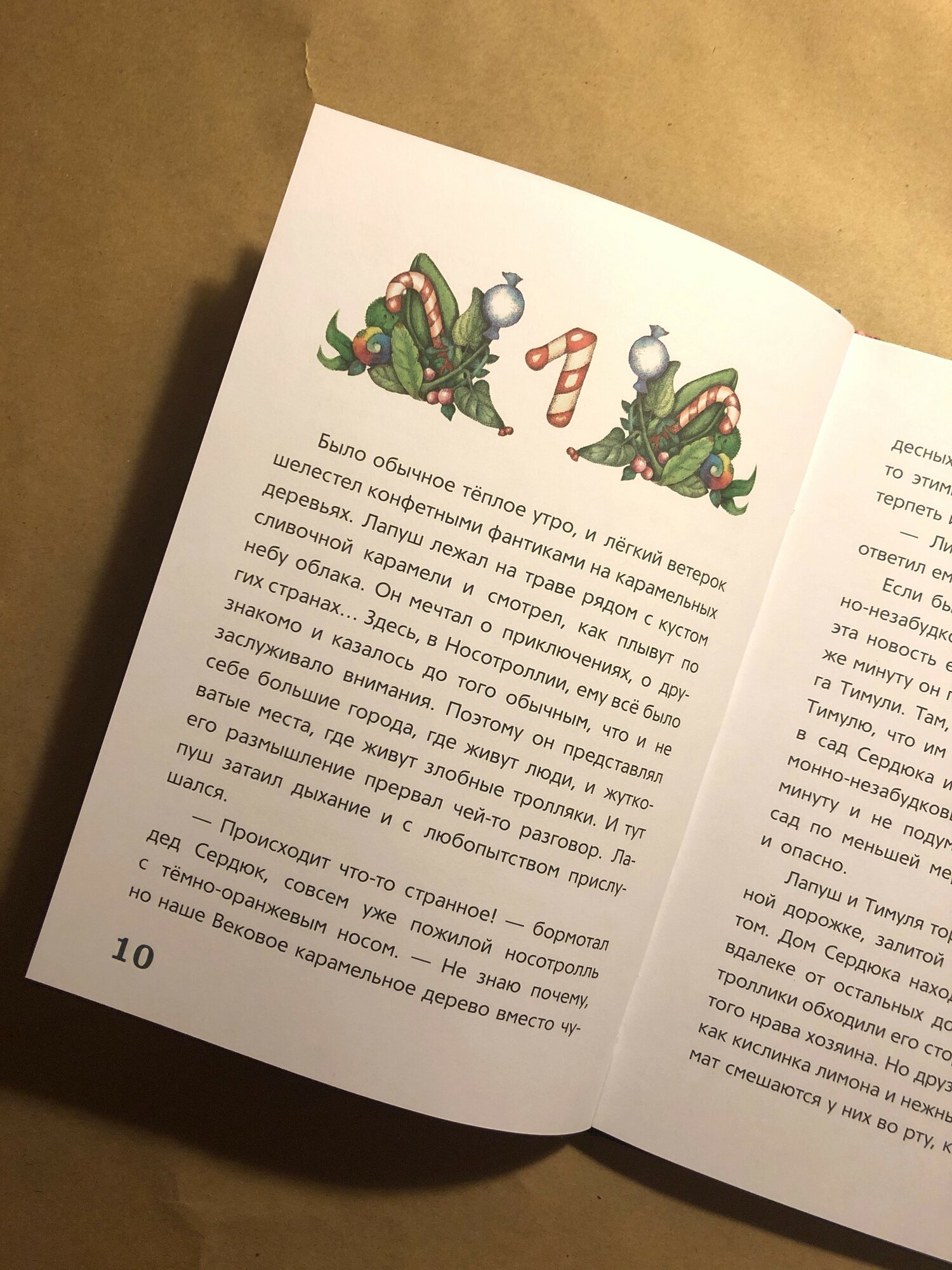 Там, где карамельки растут на деревьях и среди растущих в траве леденцов прячутся букараки, а на Вековом карамельном дереве поспевают лимонно-незабудковые карамельки, живет тихий народец — носотролли. Они выращивают конфетки на своих полях и в огородах, живут дружными семьями и обожают слушать сказочные истории. Но однажды в их чудесный городок с разноцветными остроконечными крышами приходит беда, и три маленьких носотролля — Лапуш, Тимуля и Бусинка — отправляются в трудный путь через полный тайн Дикий лес, чтобы спасти Носотроллию и убедиться, что дружба, упорство и надежда творят настоящее волшебство.
