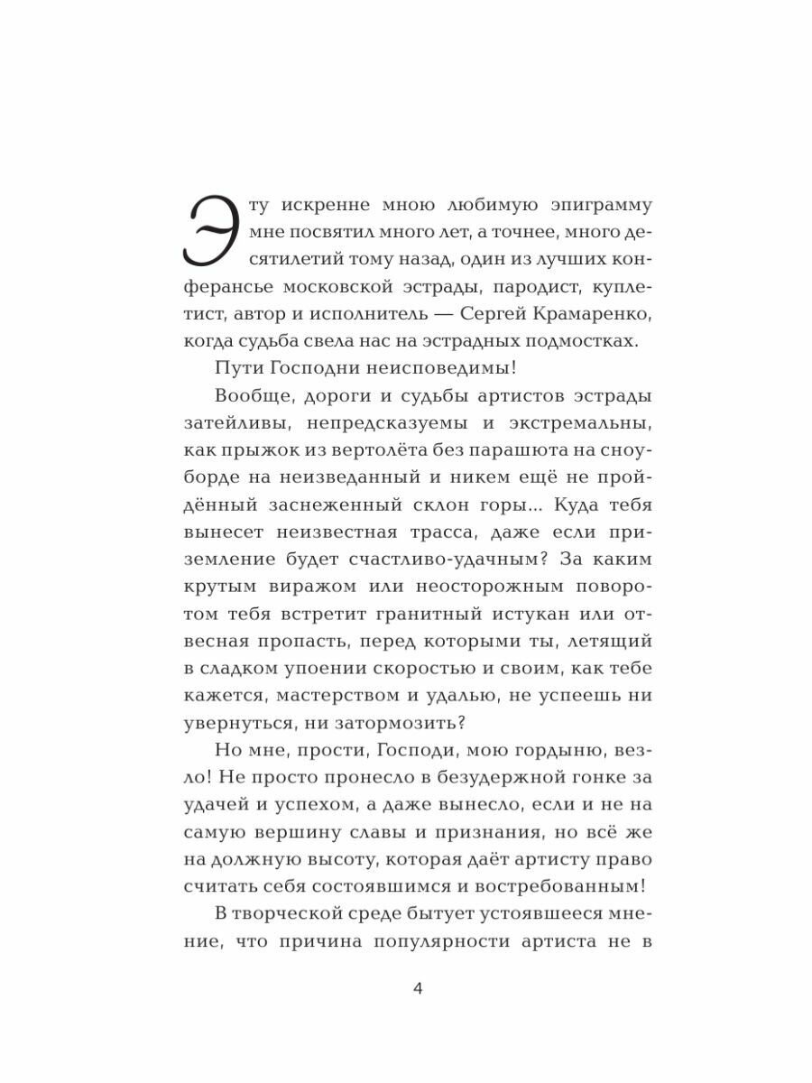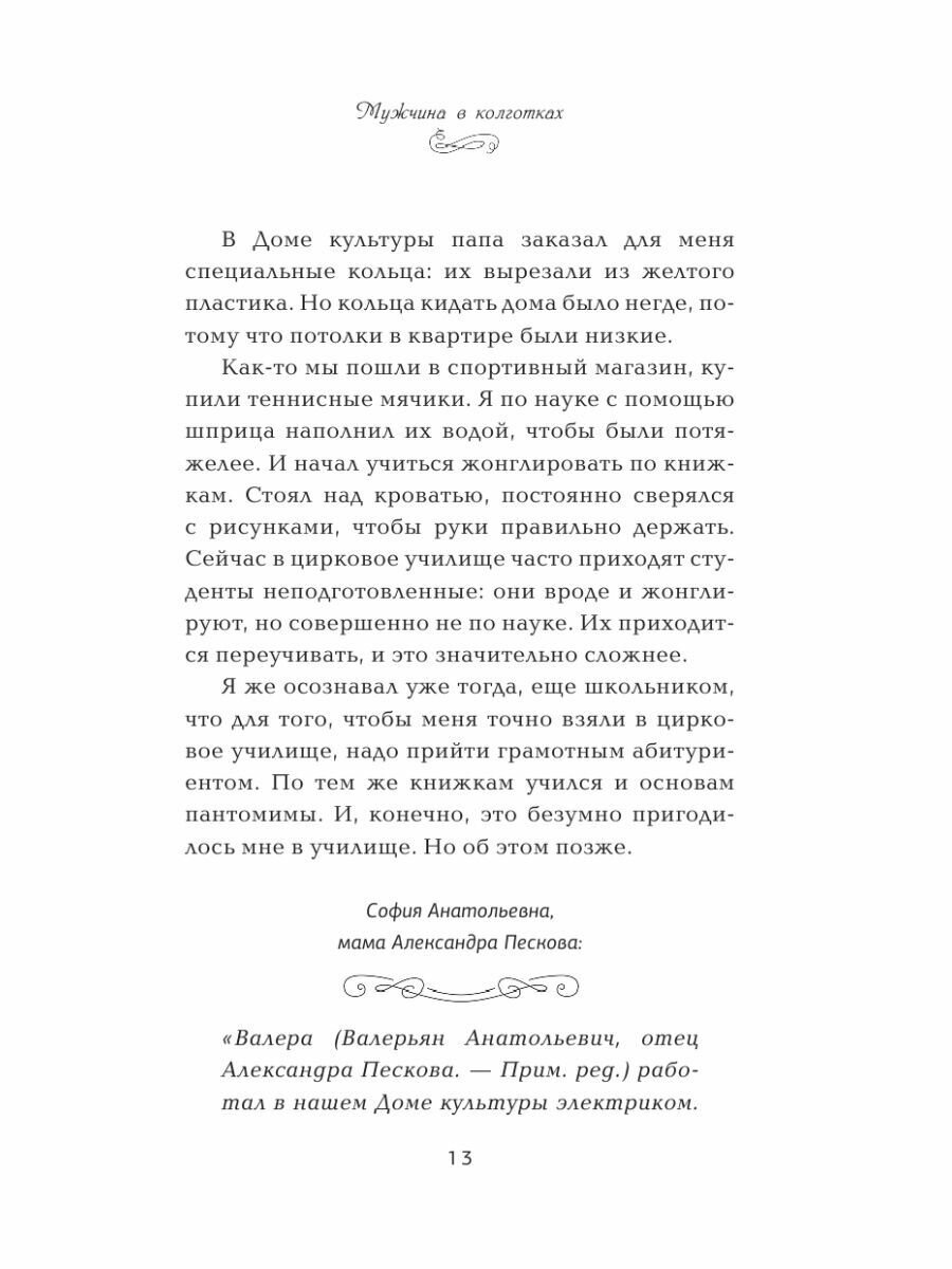 Невероятная книга! Сумасшедшее,яркое приключение Александра Пескова, буквально, длиною в жизнь. Больше всего понравились главы юности, становления его как артиста. Я не знала, что путь его был таким витиеватым...И цирковое училище, и армия, и первые выступления на сцене - все это очень живо, очень трогает.