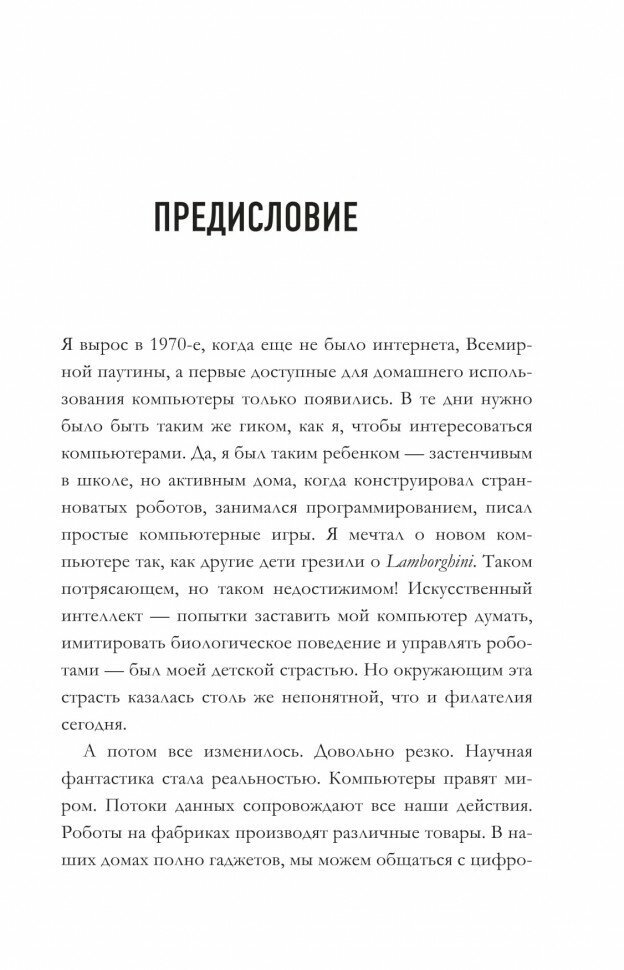 Жить в современном мире, не взаимодействуя с искусственным интеллектом и не подвергаясь его воздействию, практически невозможно. Как так получилось? И что будет дальше? Меняют ли роботы наш мир к лучшему или создают еще больше проблем? Ответы на эти и другие вопросы, а также историю развития ИИ — от истоков и мотивации его зарождения до использования умных алгоритмов — вы найдете на страницах книги Питера Дж. Бентли, эксперта в области искусственного интеллекта и известного популяризатора науки.
