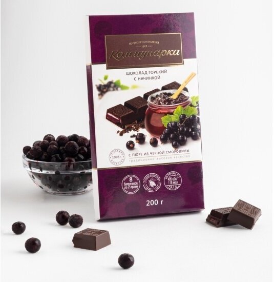 Шоколад Коммунарка Горький с начинкой с пюре из черной смородины 200г