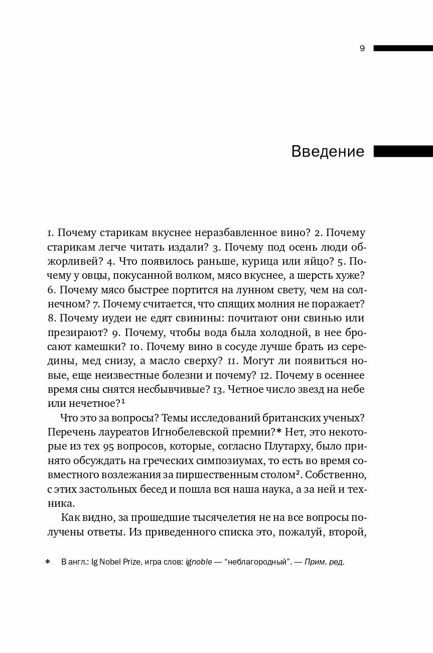 Как связаны между собой взрывчатка и алмазы, кока-кола и уровень рождаемости, поцелуи и аллергия? Каково это — жить в шкуре козла или летать между капель, как комары? Есть ли права у растений? Куда больнее всего жалит пчела? От несерьезного вопроса до настоящего открытия один шаг... И наука — это вовсе не унылый конвейер по производству знаний, она полна ошибок, заблуждений, курьезных случаев, нестандартных подходов к проблеме. Ученые, не побоявшиеся взглянуть на мир без предубеждения, порой становятся лауреатами Игнобелевской премии «за достижения, которые заставляют сначала рассмеяться, а потом — задуматься».