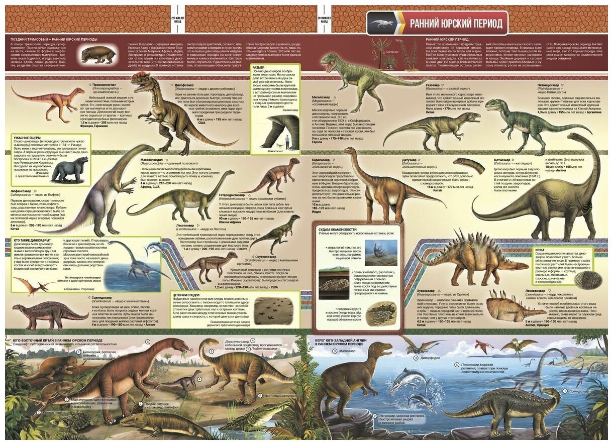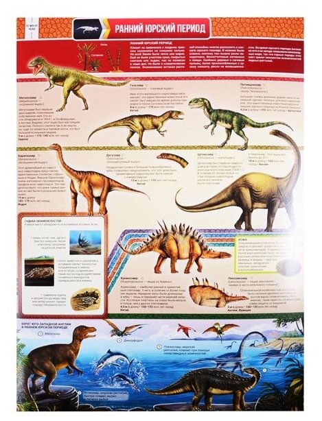 - Красочные реалистичные иллюстрации дополняют данные о среде обитания, повадках и особенностях древних ящеров.