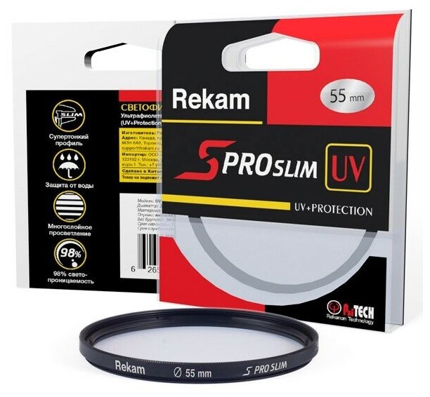 Светофильтр для фотоаппарата Rekam S PRO SLIM UV+Protection 55мм (UV 55-SMC2LC)