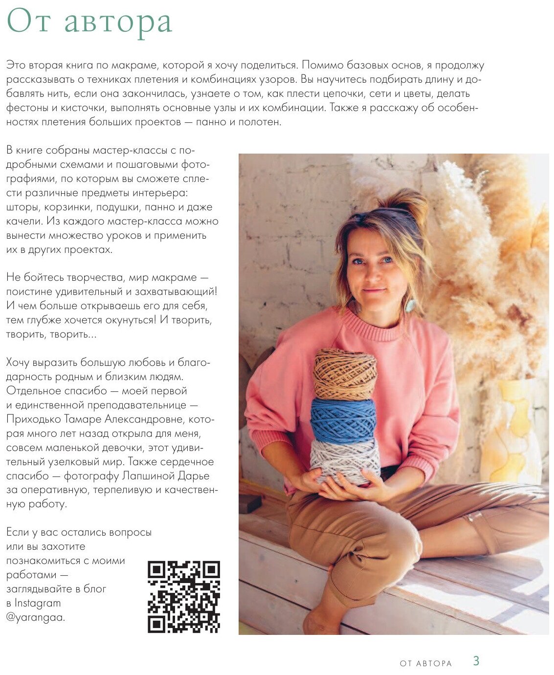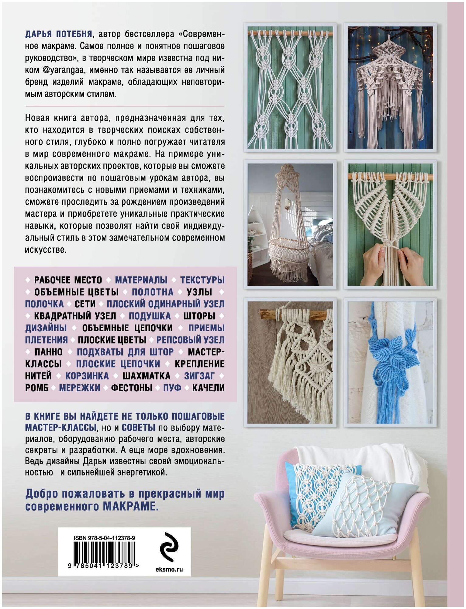Новая книга от автора бестселлера «Современное макраме» Дарьи Потебня (@yarangaa)! Предназначенная для всех, кто уже знаком с основами макраме, она еще глубже погружает читателя в мир этого удивительного искусства, раскрывает перед ним новые узлы и техники, делится секретами работы со шнуром и и тонкостями технологии создания красивых, стильных, современных и эффектных изделий для интерьера. Вы не только влюбитесь в искусство макраме на всю жизнь, но и станете настоящим мастером плетения и научитесь создавать собственные проекты и дизайны.