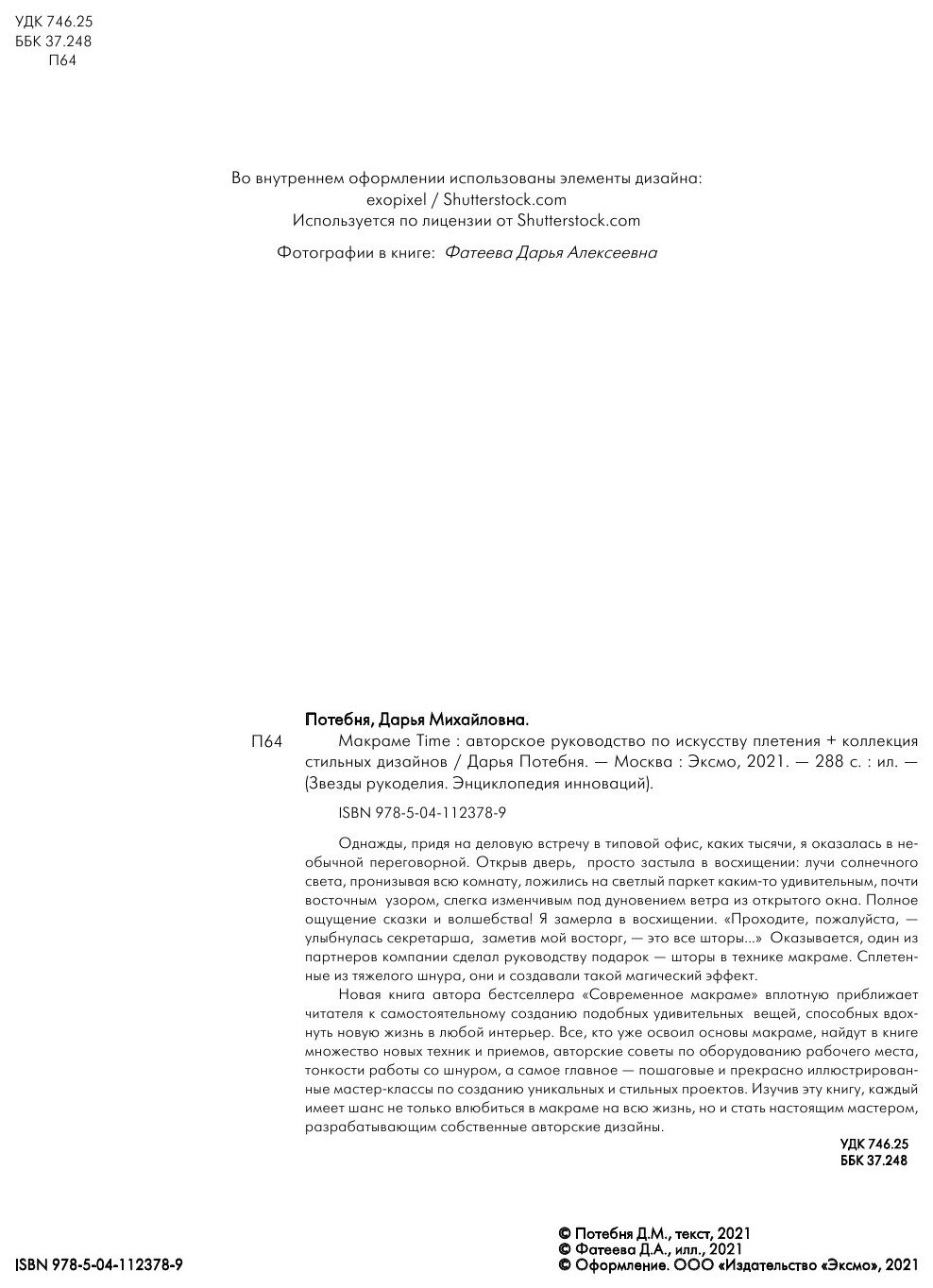 Макраме Time. Авторское руководство по искусству плетения + коллекция стильных дизайнов (Потебня Дарья Михайловна); ООО "Издательство "Эксмо", 2020