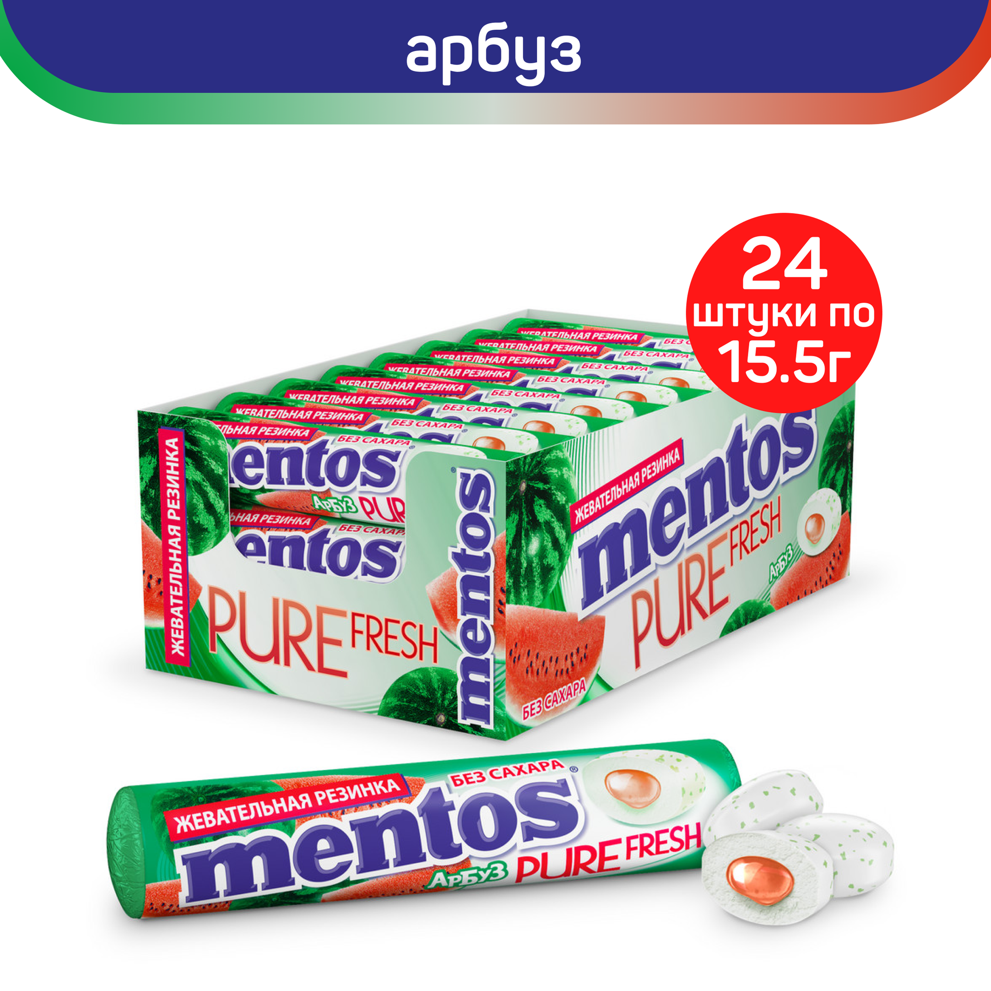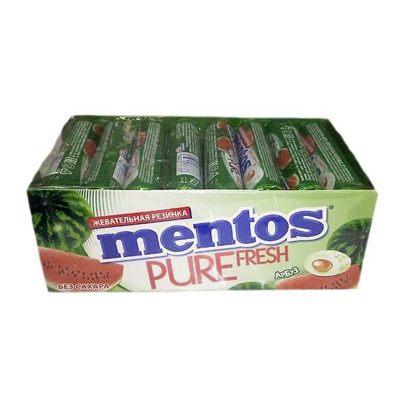 Жевательная резинка Mentos Pure Fresh вкус Арбуз – это cочные фруктовые драже жевательной резинки с жидким центром внутри в удобном формате ролла. Вы почувствуете хрустящую внешнюю оболочку и вкус спелого арбуза. Эффективно освежает дыхание, вдохновляет на свежие идеи и поднимает настроение. В составе жвачки Mentos Pure Fresh вкус Арбуз нет сахара. Благодаря компактному формату ролла жевательную резинку удобно брать с собой: упаковка легко помещается в кармане, сумке или рюкзаке.