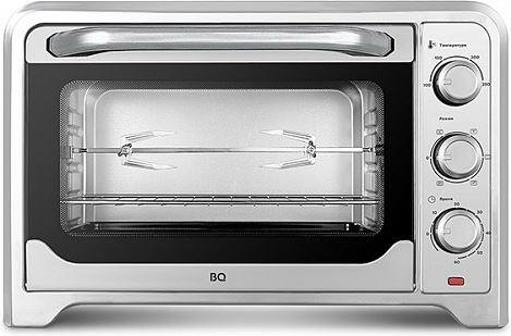 Мини-печь BQ подойдет для использования на даче. Это многофункциональный бытовой прибор, позволяющий запекать, жарить и варить. Печь работает в 5 режимах. Потребляемая мощность прибора 1400 Вт. Объем мини-печи равен 30 л. Управление осуществляется механическим способом. Температура регулируется рукояткой от 90 до 250 градусов. В комплекте мини-печи есть решетка для гриля, противень, вертел, ручка для снятия вертела, ручка для снятия противня/решетки. Особенностью данной модели является наличие 2 конфорок мощностью 1200 Вт и 700 Вт.