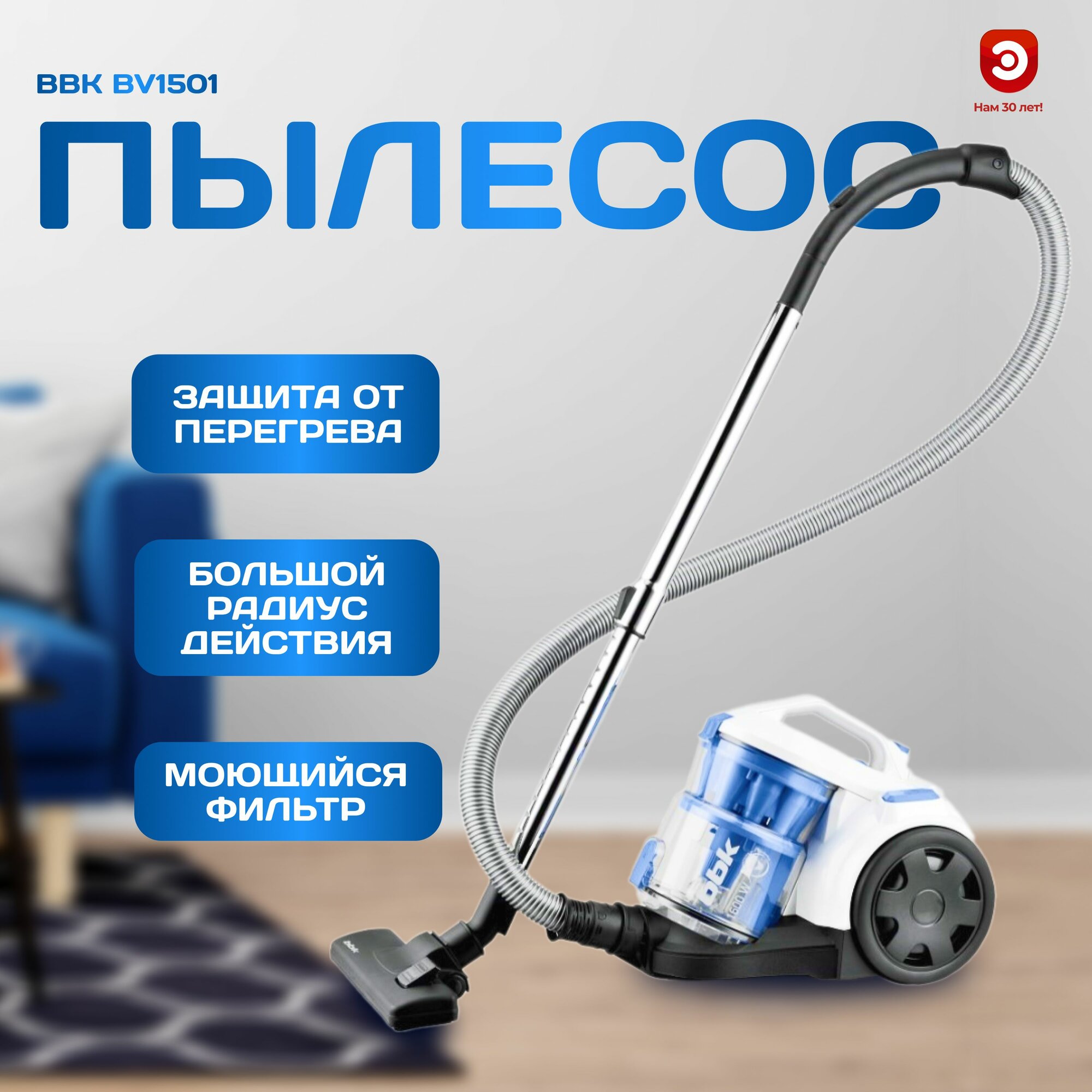 Сервис сравнения цен СкидкаГИД предлагает сравнить цены на товар «Пылесос BBK BV1501 белый/синий»