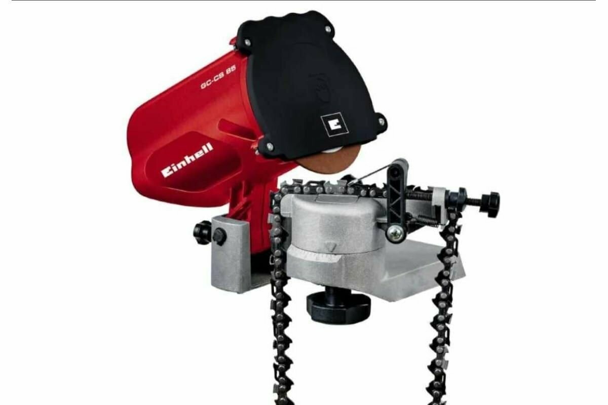 Cтанок для заточки цепей Einhell GC-CS 85 E компактный, прочный и надежный предназначен для точной заточки всех типов цепей, применяемых на бензо/электропилах. Точная заточка резцов достигается с помощью опускания шлифовального диска простым нажатием на ручку на корпусе мотора Einhell GC-CS 85 Е, благодаря шкале для точной регулировки угла шлифования и удобного зажимного механизма цепи.