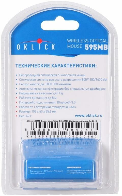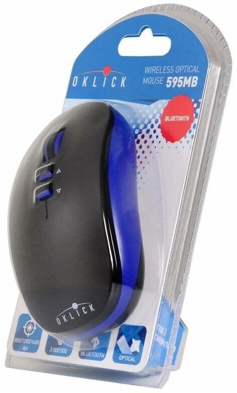 Оптическая компьютерная мышь Oklick в черно-синем цвете – удобное беспроводное устройство с разрешением сенсора 1600 dpi. Чувствительная мышь идеально реагирует на команды, отличается достаточно высокой точностью наведения курсора и подходит для ПК (ноутбуков и нетбуков), поддерживающих Bluetooth-технологию. Более того, соединение Bluetooth версии 3.0 обеспечивает совместимость с планшетными устройствами, также имеющими возможность беспроводного соединения. Благодаря радиосоединению вы можете находиться на большом расстоянии от компьютерного устройства (радиус действия мыши составляет 8 метров) и не бояться потерять сигнал.