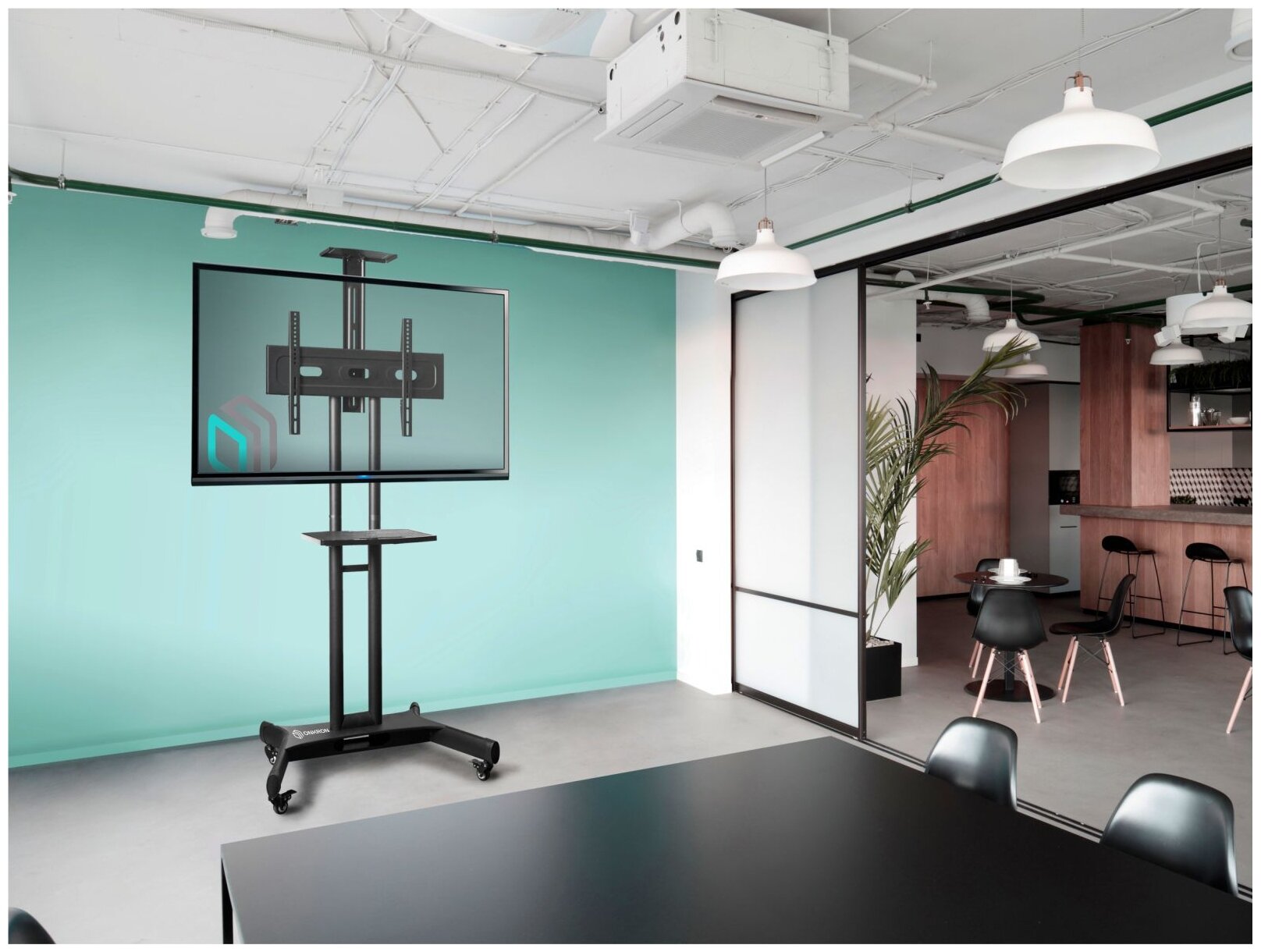 - ONKRON стойка для телевизора TS1551 с кронштейном 32"-65", мобильная, чёрная сборка и установка