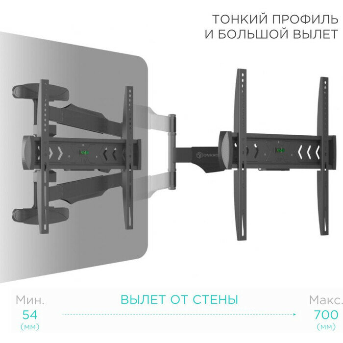 - ONKRON кронштейн для телевизора 40" - 75" наклонно-поворотный, черный NP47