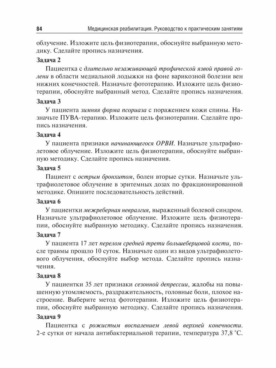 Руководство к практическим занятиям подготовлено с учетом многолетнего опыта преподавания учебной дисциплины «Медицинская реабилитация». Содержит материалы для подготовки студентов к практическим занятиям по медицинской реабилитации, повышающим эффективность самостоятельной работы и развитие практических навыков по применению лечебных физических факторов, физических упражнений и других средств реабилитации.