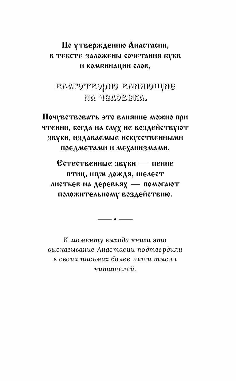 Впоследствии он, оставив бизнес, все же изложил их в своей книге под названием "Анастасия". И вскоре… по миру покатилась необычная информационная волна! Сегодня книги серии "Звенящие кедры России" переведены на 20 языков и с успехом продаются в европейских странах, Америке и Азии, о них высказываются религиозные деятели и ученые.