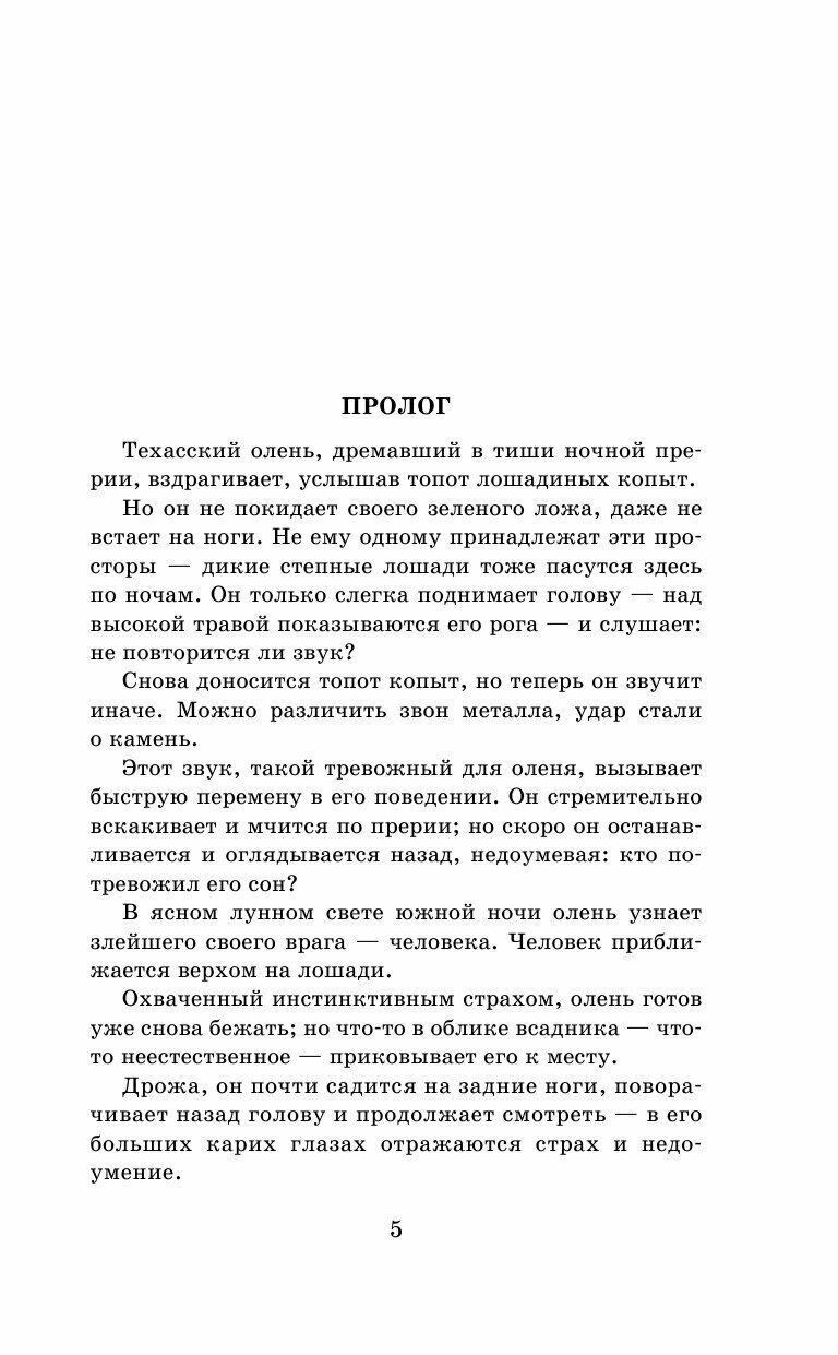 Захватывающая история прекрасной Луизы Пойндекстер и благородного ирландца Мориса Джеральда, гордой мексиканки Исидоры Коваррубио, жестокого капитана Кассия Колхауна, отважного охотника Зеба Стампа и лихого бандита Эль-Койота считается настоящим эталоном приключенческой прозы и бесконечно любима как зарубежными, так и отечественными читателями.