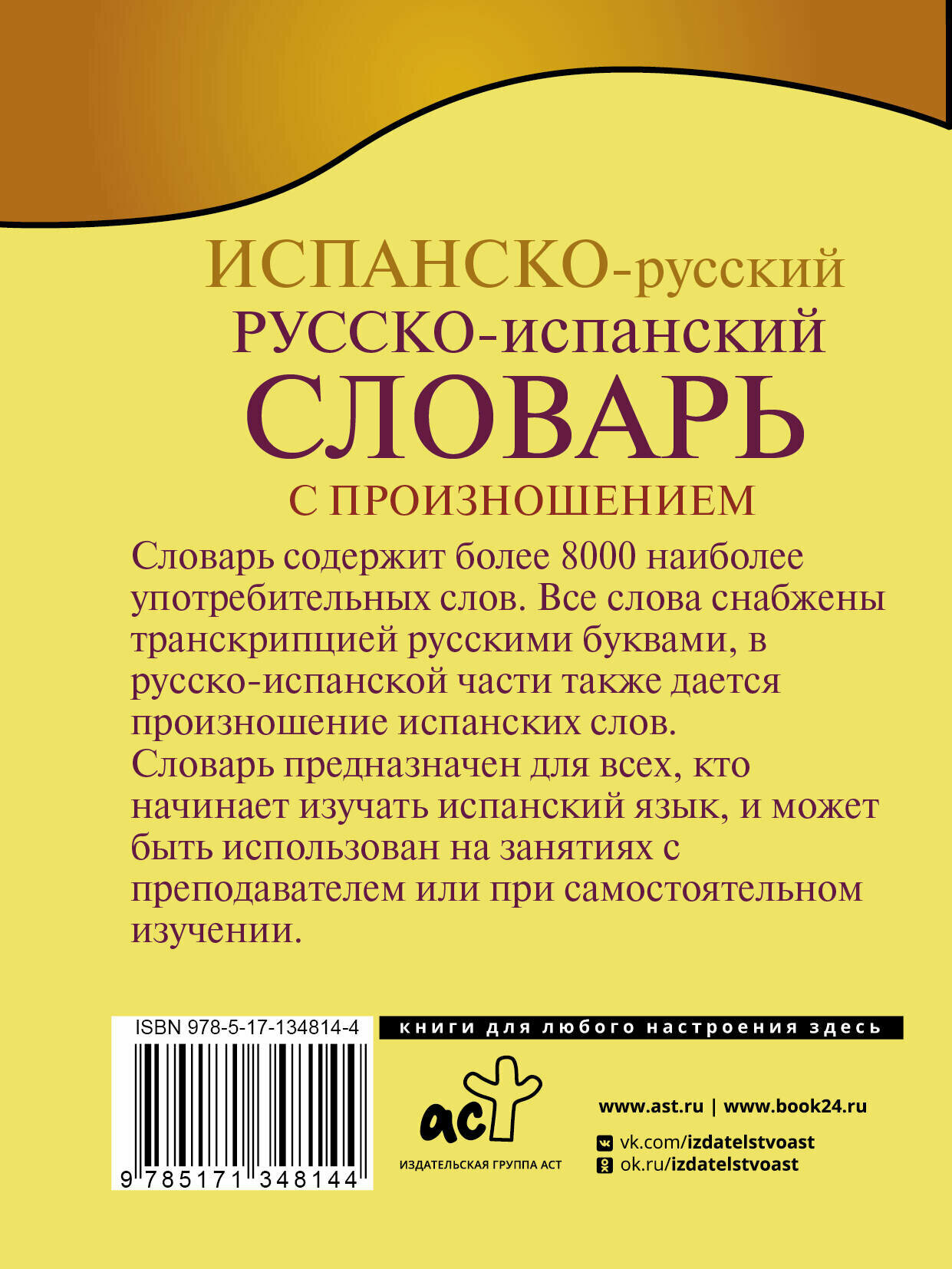 Этот словарь подготовлен автором популярных самоучителей и учебных пособий Сергеем Матвеевым. Испанско-русская и русско-испанская части содержат примерно по 4 000 наиболее употребительных слов. Все слова снабжены транскрипцией русскими буквами, причем и в русско-испанской части также дается произношение испанских слов.