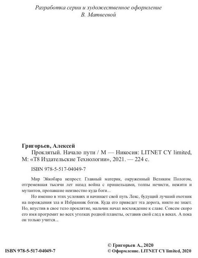 Книга: Проклятый. Начало пути (Григорьев Алексей); Т8 Издательские технологии, 2020